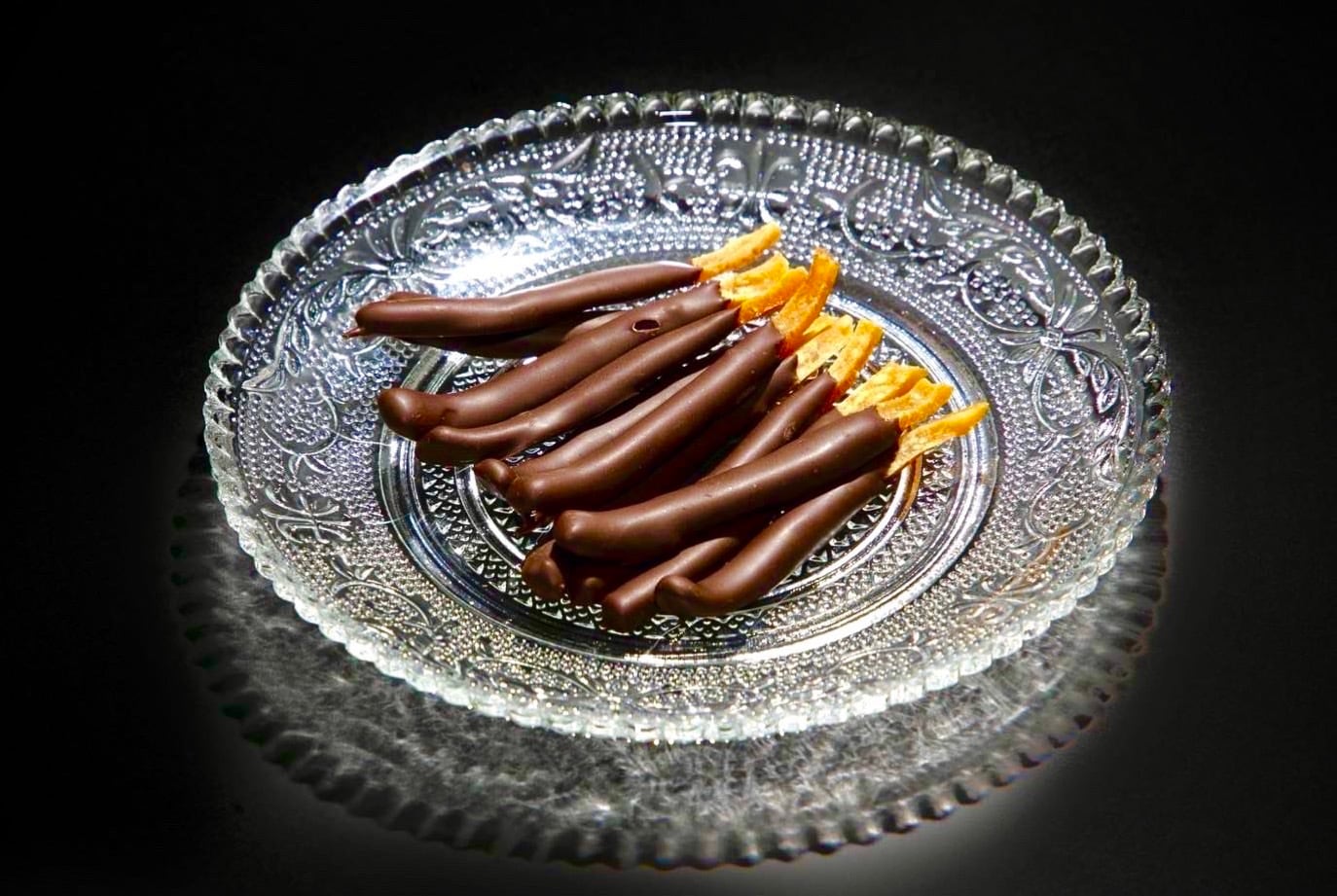 10日かけて作った自家製のオレンジピールコンフィをカカオ60%のスイートチョコでコーティングしました。